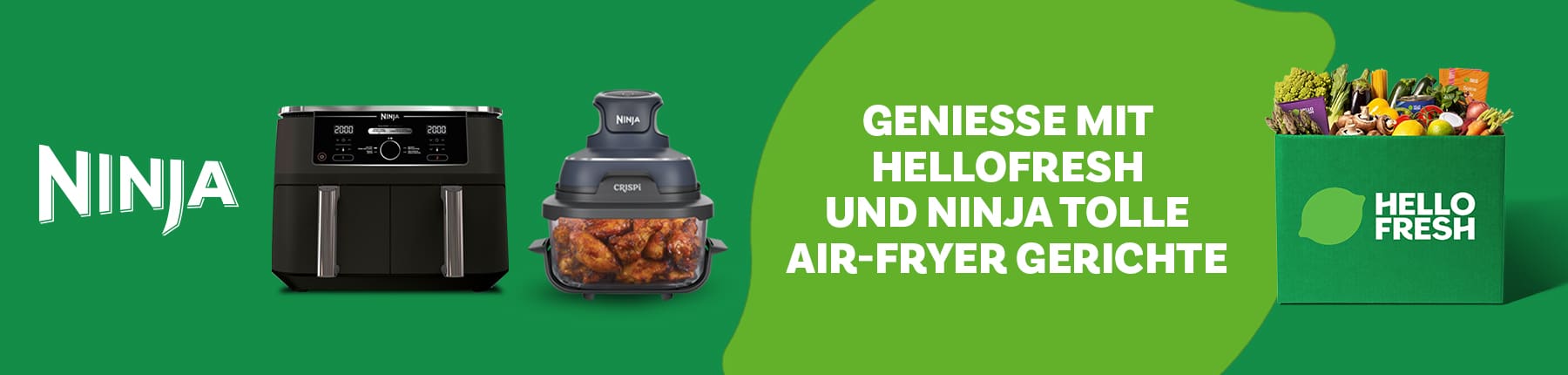 Egal ob Bestseller Heißluftfritteusen, Grills, Mixer, Multikocher – Bei Ninja findest du alles, was dein Kocherlebnis auf das nächste Level bringt! Und mit deinem Ninja Air-Fryer und der HelloFresh Box und wöchentlich drei HelloFresh Air-Fryer Rezepten wird Kochen jetzt so einfach wie nie: auspacken, zubereiten, genießen.